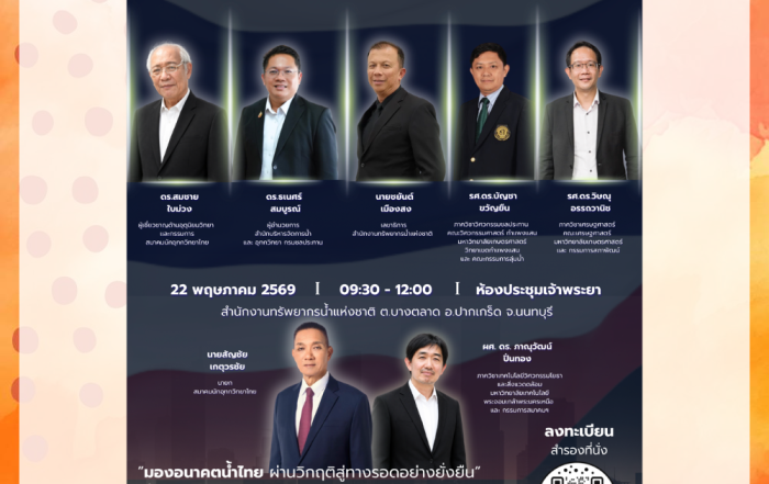 ปีนี้…น้ำจะมาแบบไหน? น้ำท่วม? น้ำแล้ง? หรือมากกว่าที่คิด มาหาคำตอบด้วยกันในงาน เสวนาวิชาการ เรื่อง " แนวทางการรับมือวิกฤติน้ำและภัยพิบัติ น้ำท่วม [...]