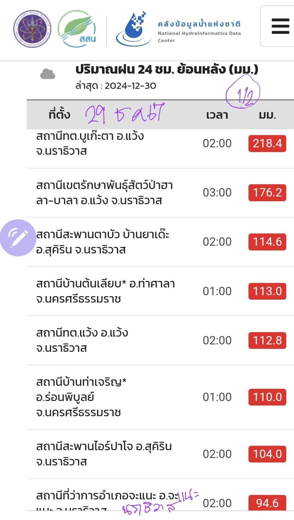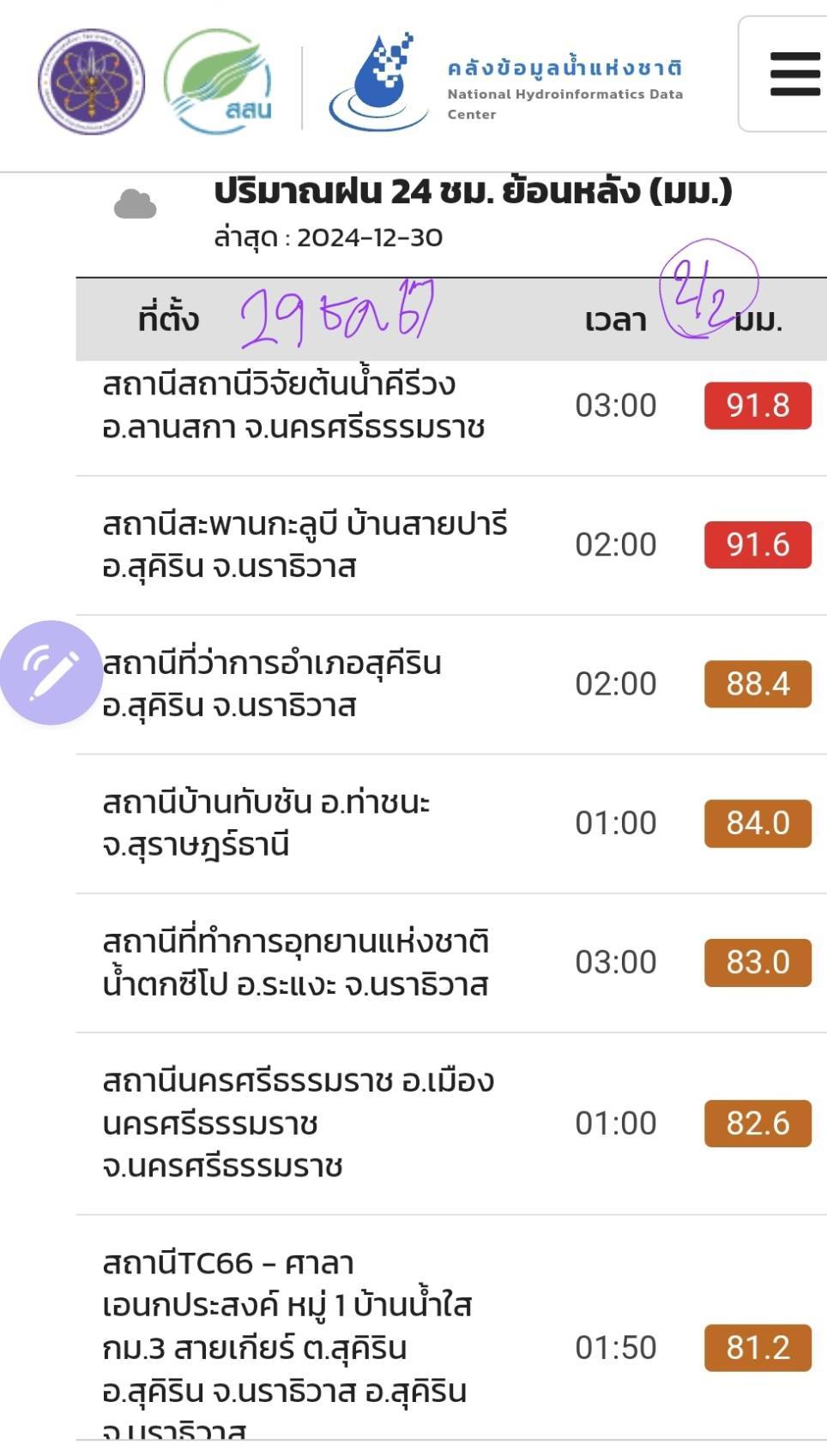 ฝนตกหนักถึงหนักมากที่นราธิวาส นครศรีธรรมราช และสุราษฎร์ธานี
